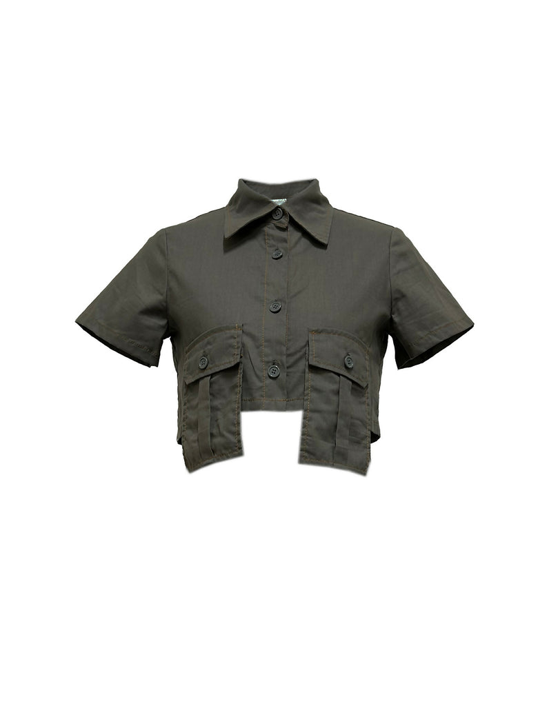 Discover the impeccable craftsmanship of the Midriff Military Organic Cotton Shirt at John Zucca. This regular fit shirt features a regular collar and short sleeves, making it perfect for a polished but comfortable look. With its front buttons closure and functional front patch pockets, it embodies both style and utility. The straight hem and regular shoulder ensure a streamlined silhouette while the unlined design in 100% organic cotton offers breathability and comfort. Made in Italy, with a length of 34 cm, this piece exemplifies our commitment to quality and sustainable fashion.