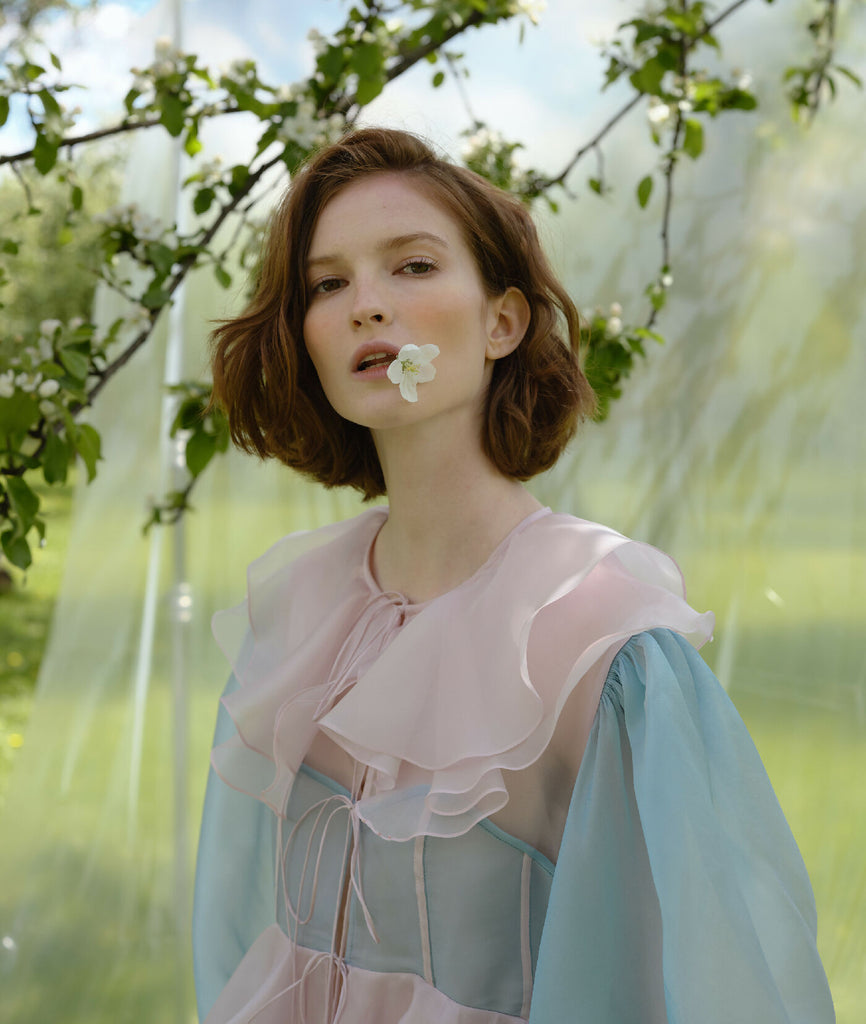 Made from delicate, sheer organza in soft blush pink and Tiffany blue, it comes with a lightweight slip dress underneath for comfort and coverage.