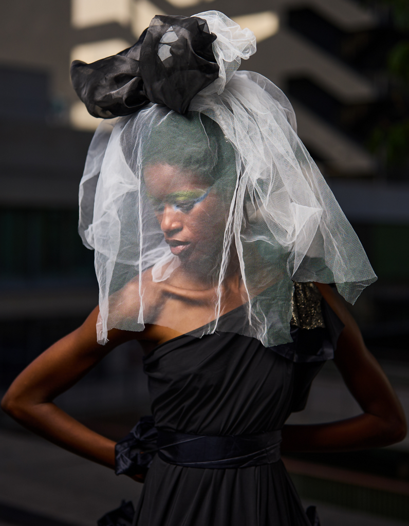 This headband is made from top quality veil with pearls. This is a unique piece.