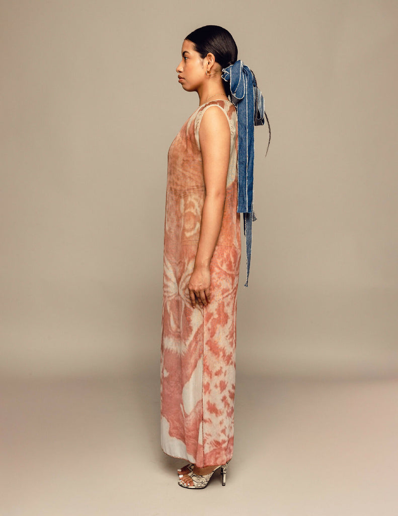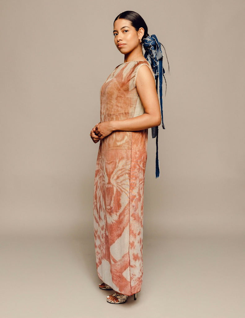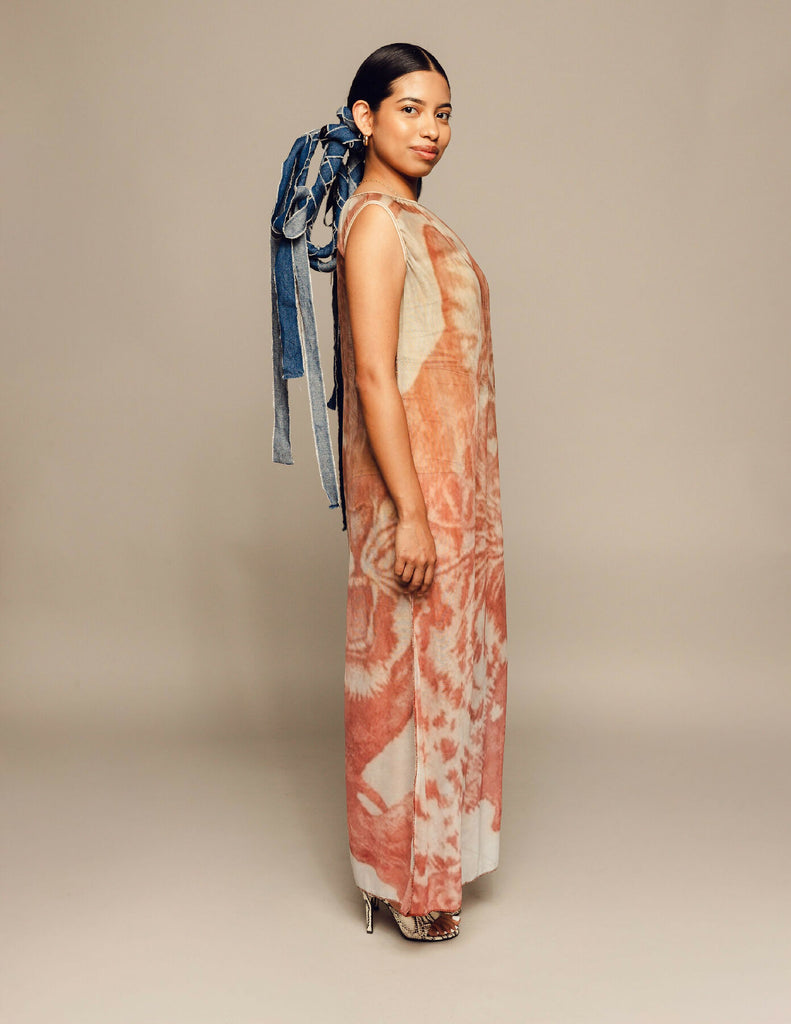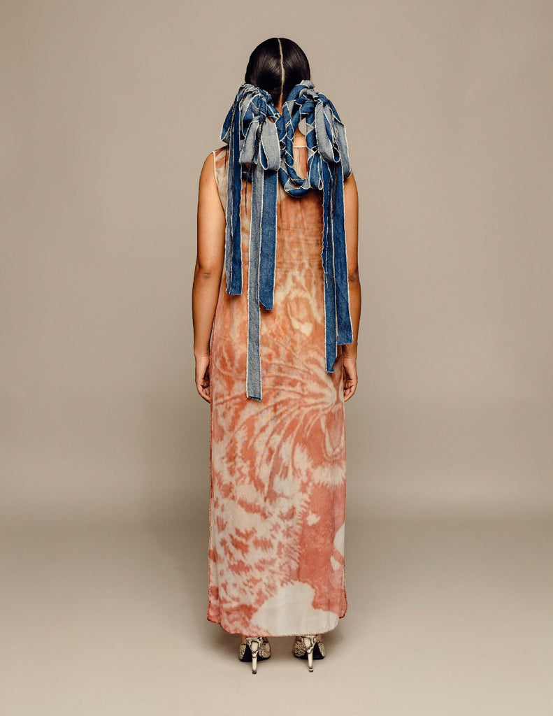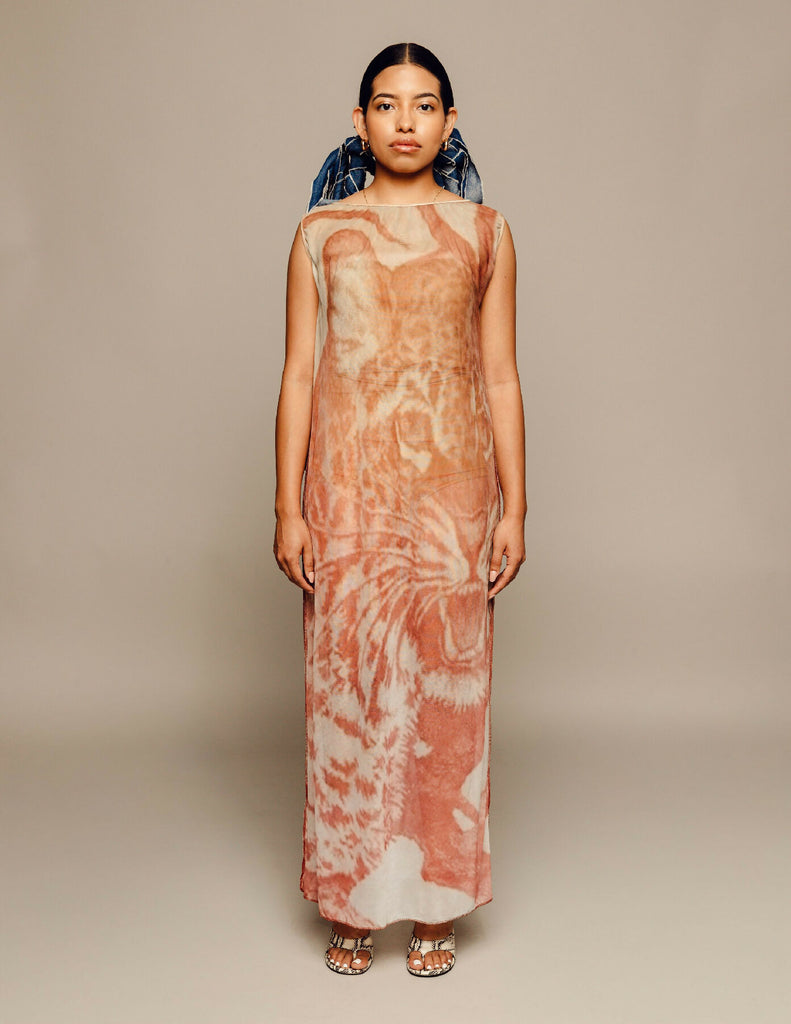 Lightweight mesh, custom printed fabric. Loose fit and flexible size.