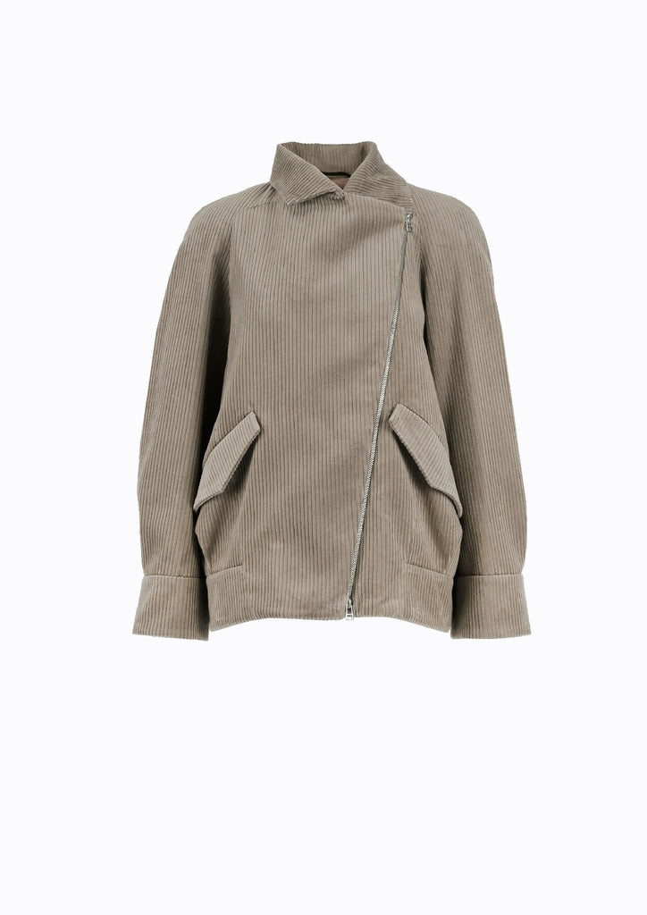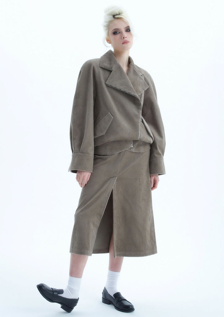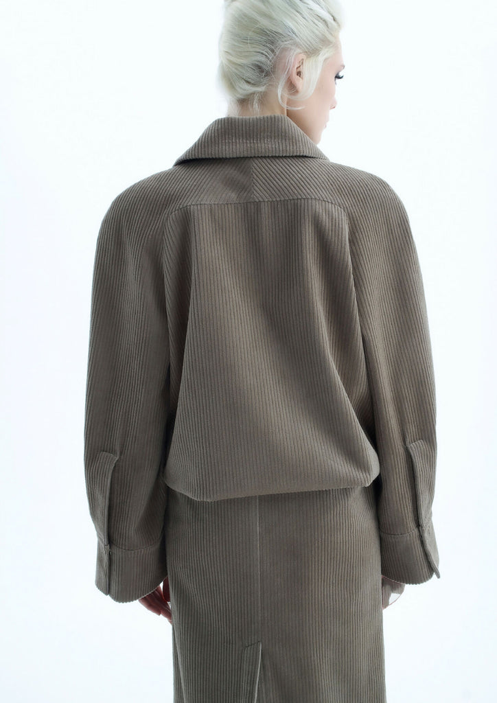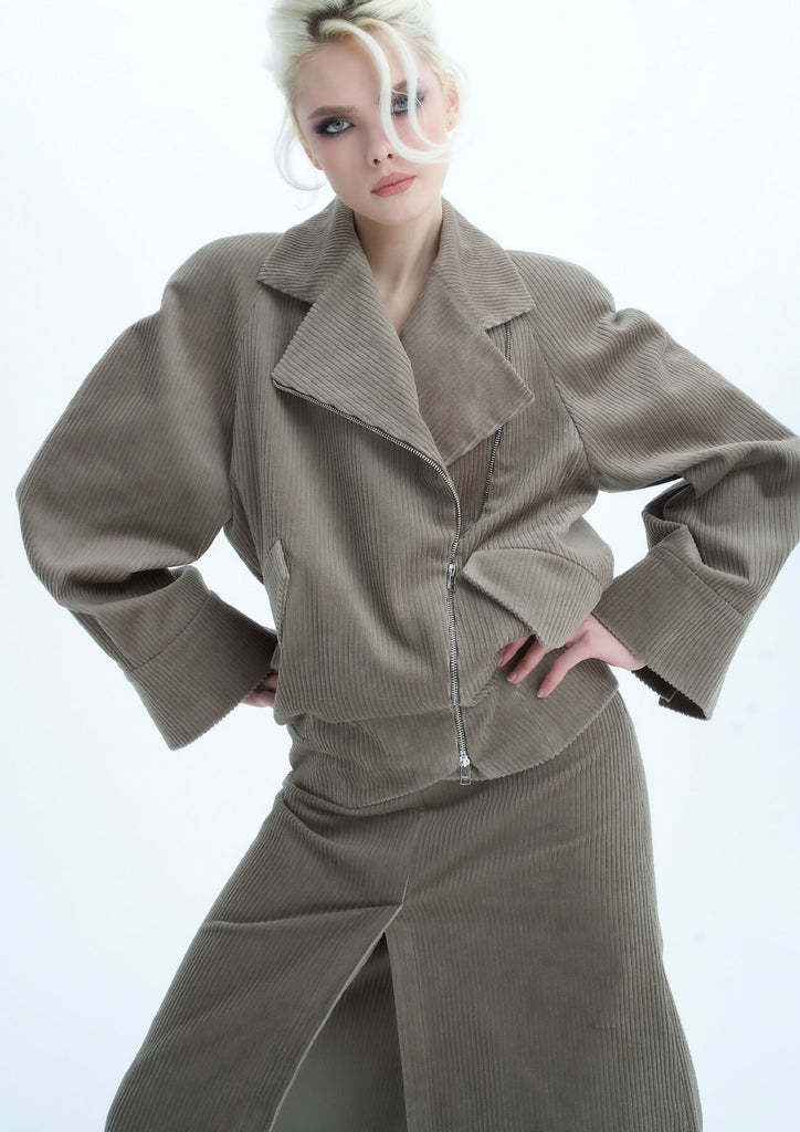 Soft velvet jacket featuring a front zip closure and two side pockets. Designed with a relaxed fit and wide lapels for a stylish, modern silhouette.